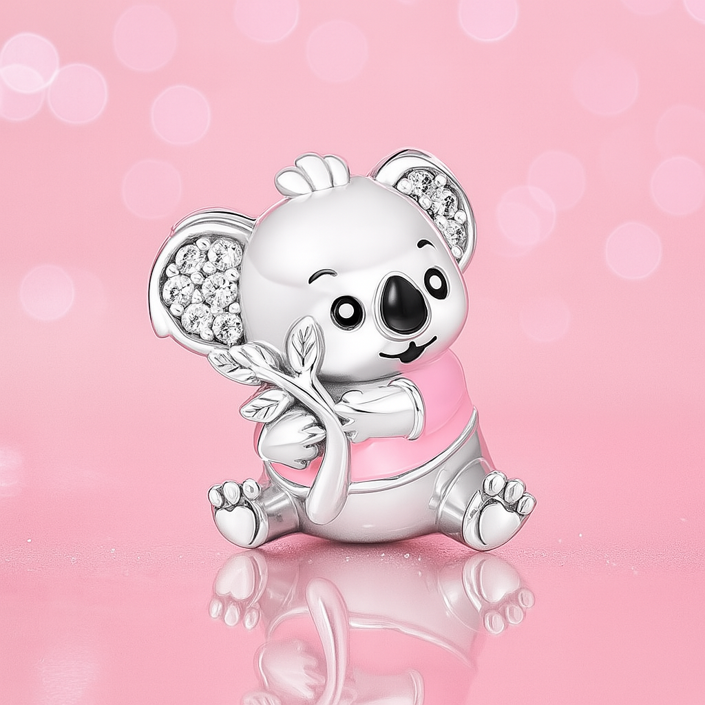 Capture the heart-melting innocence of Australia’s sweetest native with this 925 Sterling Silver Baby Koala Bear Charm, designed with smooth pink enamel and sparkling white zircon gemstones. With tiny paws, big ears, and that lovable expression, this charm brings the spirit of snuggles and serenity wherever you go. Whether you’re an animal lover or a collector of adorable treasures, this little koala will cling to your heart.