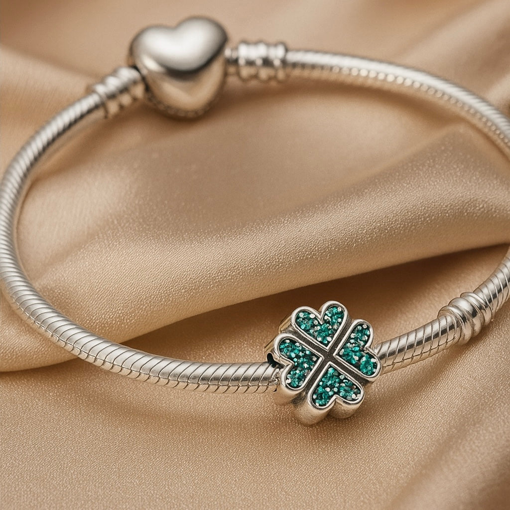 Crafted in 925 Sterling Silver, this delicate four-leaf clover charm sparkles with green zircon gemstones, each leaf a symbol of hope, love, faith, and luck. A timeless talisman, it carries the magic of fortune and the warmth of cherished dreams close to you.