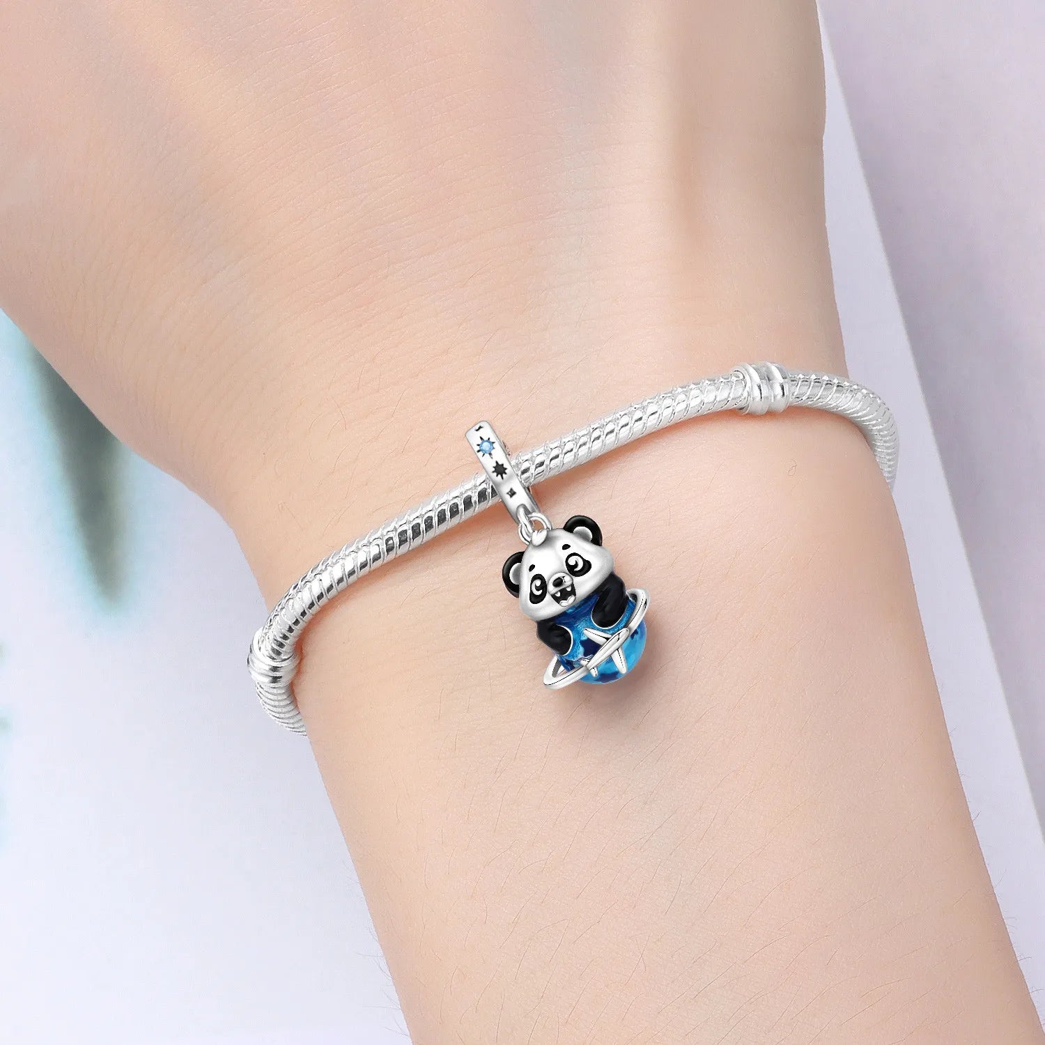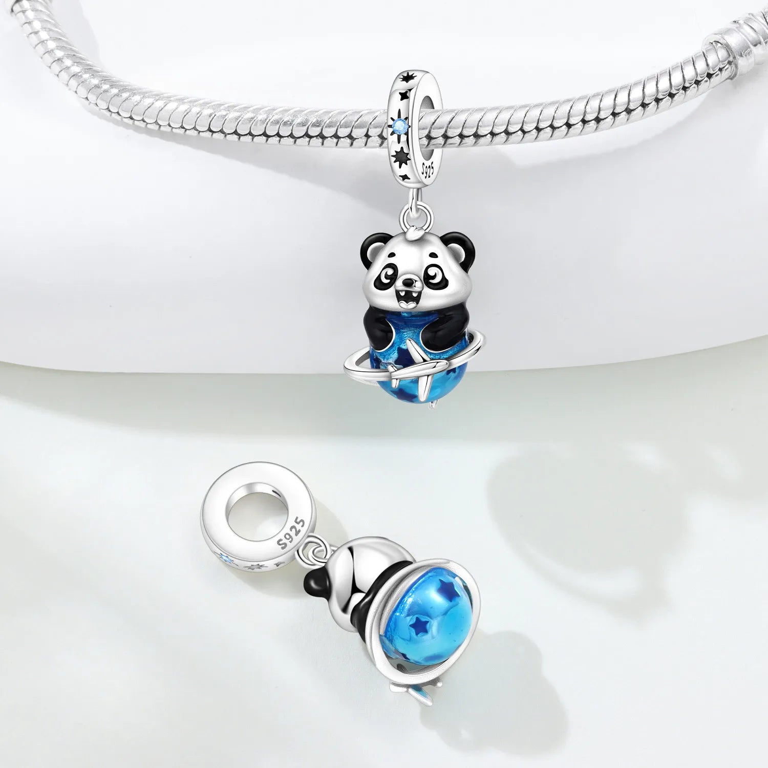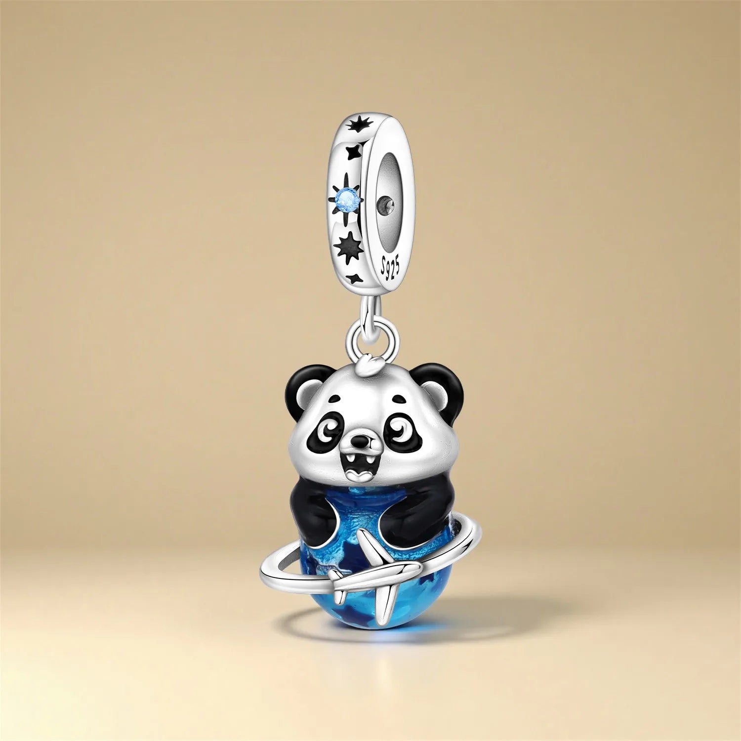 Take your adventures everywhere with this adorable 925 Sterling Silver dangle charm. A playful panda sits proudly atop a shimmering blue enamel globe, while a tiny silver airplane circles the world in flight. Designed with smooth blue and black enamel for a lively contrast, this charm celebrates the joy of exploration. The charm’s ring is detailed with delicate star engravings and finished with a sparkling blue zircon gemstone—adding a touch of wanderlust sparkle to your bracelet. A perfect keepsake for travelers, dreamers, and panda lovers alike.