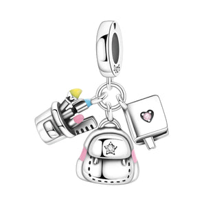 Step confidently into the adventure of learning with the Journey Ahead charm, featuring a school backpack, a pencil holder with pens and a notebook. Crafted in shimmering 925 sterling silver, this charm embodies the excitement, hope, and endless possibilities that come with every new school year. Perfect for students or anyone embracing growth, it’s a beautiful reminder that each day is a fresh page waiting to be filled with dreams, discoveries, and unforgettable moments.